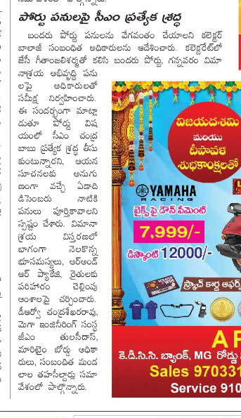 sonykongara Posted May 12, 2016 Author Posted May 12, 2016 British valla time lo chennai tho almost equal importance vundedi. independence taruvata gali ki vadilesaru mottam. final ga oka fihsing harbour range ki techaru. If CBN can get this rolling then he will be remembered in history as econimic Cotton dora. Land acquisition,permissions, contracting takes another 2 years. If not immediately atleast in next 5 years they start coastal corridor road project. Our golden days are ahead anukuni munduku kadaltame yes bro.