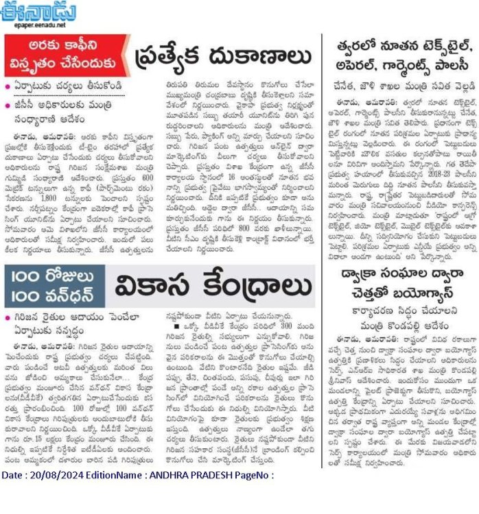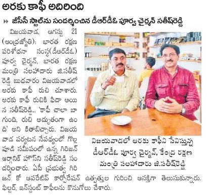 sonykongara Posted August 10, 2016 Author Posted August 10, 2016 AP to promote Araku coffee in a big way : CM inShare Visakhapatnam, Aug 9: The organic coffee being grown in the picturesque Araku valley in the eastern ghats of Visakhapatnam district will be promoted in the domestic and international markets by the AP Government in a big way and coffee cultivation will transform the lives of Girijans in the area, Chief Minister N. Chandrababu Naidu has promised. He made the promise at a public meeting on Tuesday in the Araku valley on the occasion of the International Day of the World's Indigenous People, after visiting Pedalabudu tribal village in the Araku valley which he has adopted. "I have adopted the village in Araku to set an example for others so that the remote villages in your area get a big boost," he told the audience. He said the Girijans in the Araku valley were growing coffee without using fertilisers and pesticides and "the organic coffee is in great demand. Even Prime Minister Narendra Modi expressed his appreciation of the coffee earlier this year when he visited Visakhapatnam. We have drawn up plans to promote coffee cultivation in an additional one lakh acres in the valley at a cost of ₹ 530 crores. It will boost the income levels of Girijans." Tourism promotion Describing Araku valley as the most beautiful one in the State and the country, he said tourism would be promoted in the area and also promised to set up more schools and colleges and to improve medical facilities. He said the resources in the Araku valley should be made use of for the welfare of Girijans and the fruits of development should reach them. sarma.rs@thehindu.co.in (This article was published on August 9, 2016)