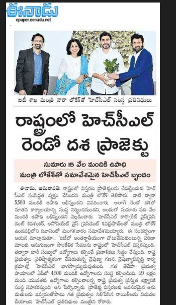 sonykongara Posted September 13, 2018 Author Posted September 13, 2018 విజయవాడలో హెచ్సీఎల్ ఎస్ఎస్హెచ్ఎస్ న్యూదిల్లీ: వేగంగా అభివృద్ధి చెందుతున్న విజయవాడ నగరంలో ప్రముఖ ఐటీ సేవల సంస్థ హెచ్సీఎల్.. అమెరికాకు చెందిన స్టేట్ స్ట్రీట్ కార్పొరేషన్తో కలిసి ఐటీ సేవల కేంద్రాన్ని ఏర్పాటు చేయనుంది. 63వేల చదరపు అడుగల విస్త్రీర్ణంలో ఏర్పాటు చేయనున్న ఈ సెంటర్ ఏర్పాటు ద్వారా 1000మందికి ఉపాధి కల్పించడమే లక్ష్యంగా పెట్టుకుంది. బ్యాక్ ఆఫీస్, పెట్టుబడి నిర్వహణ, పరిపాలన విభాగం, బ్రోకరేజ్ సేవలు మొదలైన వాటిని ప్రారంభిస్తామని బీఎస్ఈ ఫైలింగ్ సందర్భంగా హెచ్సీఎల్ టెక్నాలజీస్ తెలిపింది. కామర్స్లో గ్రాడ్యుయేషన్, పోస్ట్ గ్రాడ్యుయేషన్ పూర్తి చేసిన వారికి ఉపాధి కల్పించనున్నట్లు వెల్లడించింది. ‘ఆంధ్రప్రదేశ్ వ్యాప్తంగా మా సేవలు మరింత విస్తరిస్తాయని విశ్వాసంతో ఉన్నాం. అంతేకాదు, నిరుద్యోగులకు ఉపాధి కల్పించడంతో పాటు, నైపుణ్యాభివృద్ధి అవకాశాలు కూడా మెండుగా ఉంటాయి. యువత సొంత రాష్ట్రంలో ఉపాధి పొందేందుకు ఇది ఎంతగానో ఉపయోగపడుతుంది’ అని హెచ్సీఎల్ టెక్నాలజీస్ కార్పొరేట్ ఉపాధ్యక్షుడు అనూప్ తివారి తెలిపారు.
