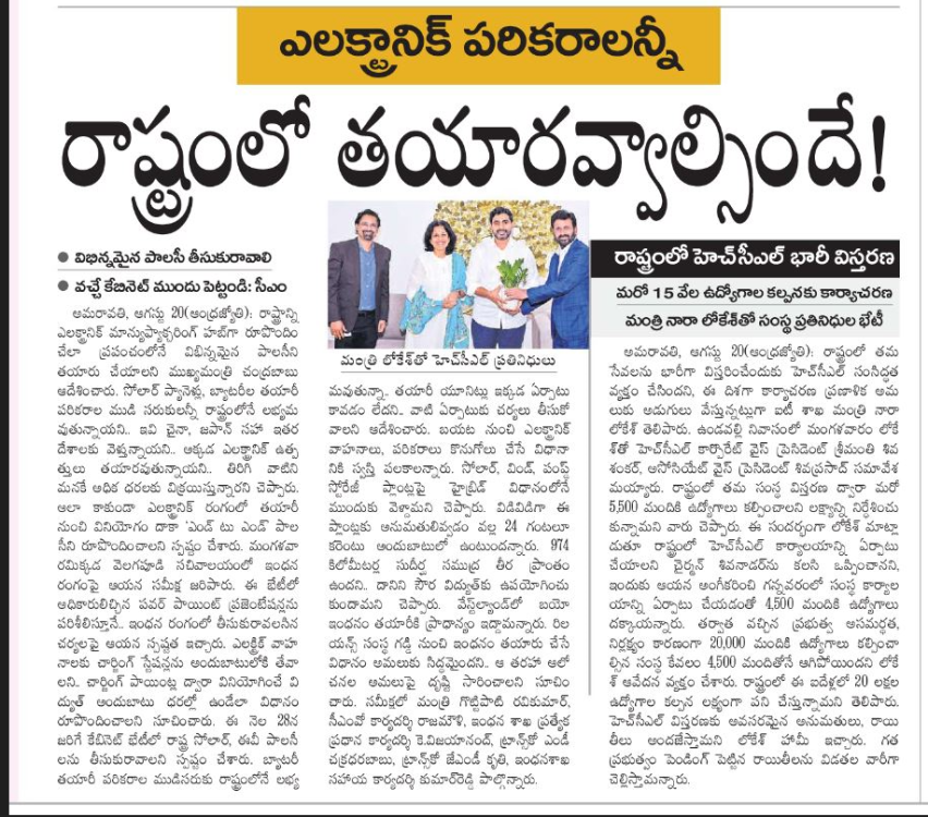 sonykongara Posted August 7, 2018 Author Posted August 7, 2018 పక్షం రోజుల్లో హెచ్సీఎల్ ప్రారంభం!07-08-2018 08:29:14 మేథలో హెచ్సీఎల్ బ్లాక్ ఇంటీరియర్ పనులు పూర్తి ఐటీ మంత్రి నారా లోకేష్చే ప్రారంభోత్సవానికి ఏర్పాట్లు విజయవాడ: ఎప్పుడా.. ఎప్పుడెప్పుడా... అని ఎదురుచూస్తున్న హెచ్సీఎల్ టెక్నాలజీస్ సేవలు మరో పక్షం రోజుల్లో ప్రారంభం కాబోతున్నాయి. కేసరపల్లి ఎల్అండ్టీ - ఏపీఐఐసీ హైటెక్ సిటీలోని ‘మేథ’ టవర్లో లక్ష చదరపు అడుగుల విస్తీర్ణంలో తన సేవలను ప్రారంభించటానికి హెచ్సీఎల్ నిర్వాహకులు అన్ని ఏర్పాట్లు చేశారు. రాష్ట్ర ఐటీ మంత్రి నారా లోకేష్ చేతుల మీదుగా ప్రారంభించటానికి హెచ్సీఎల్ నిర్వాహకులు సన్నాహాలు చేస్తున్నారు. సోమవారం ఆ సంస్థకు చెందిన ప్రతినిథి బృందం మేథ టవర్ను సందర్శించింది. హెచ్సీఎల్ బ్లాకులో గత కొద్దినెలలుగా ఇంటీరియర్ పనులు జరుగుతున్న సంగతి తెలిసిందే. ఈ పనులు ప్రస్తుతం పూర్తయ్యాయి. పూర్తయిన ఇంటీరియర్ పనులను హెచ్సీఎల్ బృందం పరిశీలించింది. గన్నవరంలోని ఆర్టీసీ జోనల్ కాలేజీ స్థలంలో శాశ్వతంగా టెక్నాలజీస్ పార్క్ నిర్మాణానికి హెచ్సీఎల్ మరోవైపు చర్యలు తీసుకుంటున్న సంగతి కూడా తెలిసిందే. ఎయిర్పోర్టు ఉండటం వల్ల డిజైన్లకు కేంద్రం నుంచి ఇంకా కొన్ని అనుమతులు రావాల్సి ఉన్నందున ఇక్కడ శంకుస్థాపన, హైరైజ్ భవన నిర్మాణ పనులు ప్రారంభించటానికి చాలా సమయం పట్టే అవకాశం ఉంది. దీనిని దృష్టిలో ఉంచుకుని ‘మేథ’ టవర్లో తాత్కాలికంగా తమ కార్యకలాపాలు ప్రారంభించాలని హెచ్సీఎల్ నిర్ణయించింది. లక్ష అడుగుల విస్తీర్ణాన్ని తీసుకుని గత ఆరు నెలలుగా పనులు చేయిస్తోంది. హెచ్సీఎల్ కార్యకలాపాలు ప్రారంభించనున్న నేపథ్యంలో, స్థానిక యువత ఉద్యోగాల కోసం ఎంతగానో ఎదురు చూస్తోంది. స్థానికంగానే ఉద్యోగాలు కల్పిస్తామని ఇప్పటికే హెచ్సీఎల్ యాజమాన్యం ప్రకటించింది. మేథ టవర్ నుంచి తాత్కాలికంగా సేవలు అందించనున్న హెచ్సీఎల్ స్థానికంగా ఉన్న వారిని ఉద్యోగాలలోకి తీసుకుంటుందా అన్నదానిపై అనుమానంగా ఉంది. హెచ్సీఎల్తో కుదిరిన ఒప్పందం ప్రకారం నూతనంగా నిర్మించబోయే హై రైజ్ బిల్డింగ్లో కార్యకలాపాలు ప్రారంభించటానికే స్థానికంగా ఉన్న యువతకు అవకాశాలు కల్పించాల్సి ఉంటుంది. ఇంకా శంకుస్థాపన కూడా అక్కడ జరగలేదు. ఈ క్రమంలో తాత్కాలికంగా మేథ టవర్ నుంచి సేవలు అందించటానికి సన్నాహకాలు చేస్తున్నా .. తమ పాత సిబ్బంది ద్వారా విధులు నిర్వహిస్తారన్న ప్రచారం జరుగుతోంది. ఇప్పటి వరకు రిక్రూట్మెంట్ ప్రక్రియను ఆ సంస్థ నిర్వాహకులు చేపట్టలేదు. దీనిని దృష్టిలో ఉంచుకుని చూస్తే.. పూర్తి స్థాయిలో గన్నవరంలో నిర్మించే టెక్నాలజీస్ పార్క్లో మాత్రమే స్థానికంగా ఉన్న యువతను ఉద్యోగాలలోకి తీసుకునే అవకాశం ఉందని తెలుస్తోది.
