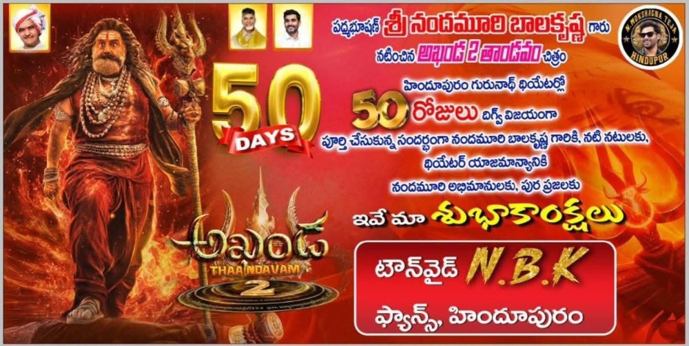 Nfan from 1982 Posted March 12, 2025 Posted March 12, 2025 #Akhanda2 Update శ్రీరామనవమికి అంటున్నరు, లేకపోతె ఇప్పట్లో ఉండదు... ప్రస్తుతం హైదరాబాద్లో షూటింగ్ జరుగుతోంది.. 2025 సెప్టెంబర్ 25న విడుదల.. Mobile GOM 1
