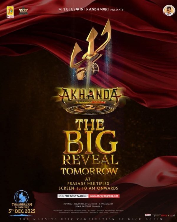Nfan from 1982 Posted December 11, 2024 Posted December 11, 2024 BALAKRISHNA - BOYAPATI SREENU REUNITE FOR 'AKHANDA 2': SHOOT BEGINS - 25 SEPT 2025 RELEASE… #NandamuriBalakrishna and director #BoyapatiSreenu - who delivered a hat-trick with #Simha, #Legend and #Akhanda - join forces for the fourth time [#BB4]: #Akhanda2: #Thaandavam. Filming commenced today in #Hyderabad… Also, the makers have finalised the release date: [Thursday] 25 Sept 2025. Produced by #RaamAchanta and #GopiAchanta... Music by #ThamanS... #MTejeswiniNandamuri presentation.
