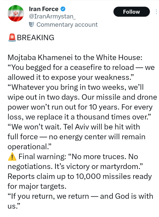 February 28Feb 28 3 minutes ago, chanti149 said: Iran missiles land in north israel....no casualities reported Haifa refiniries attacked Adani mama port ki any loss???? SATURDAY morning start chesi SUNDAY late night ki END cheyamani chebuthadu TRUMP TAATHA...MONDAY MARKETS important ga thanaki.....WEEKEND SKIRMISH anthe Edited February 28Feb 28 by vikramgemini