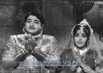 2751 viewsKrishnakumari, Gummadi (far right) as sathyasena, Rajanala (Middle) as soorasimhudu